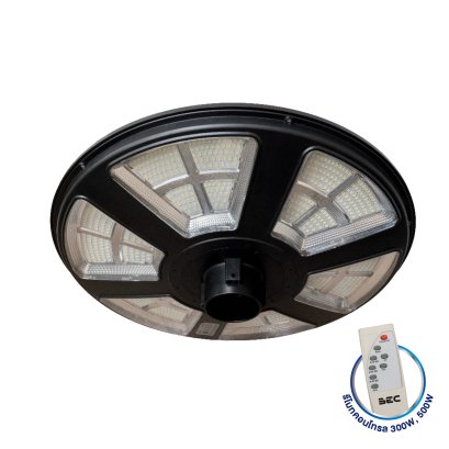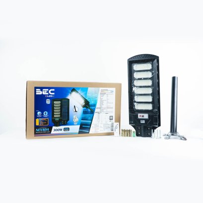 โคมไฟถนนโซลาร์เซลล์ มาพร้อมขาจับยึดโคมในชุด สะดวกในการติดตั้ง ควบคุมการทำงานเปิด-ปิด และเพิ่ม-ลดแสง พร้อมการตั้งเวลาปิดผ่านรีโมตคอนโทรล มีหลอดไฟ LED ในตัว กำลังไฟ 300 วัตต์