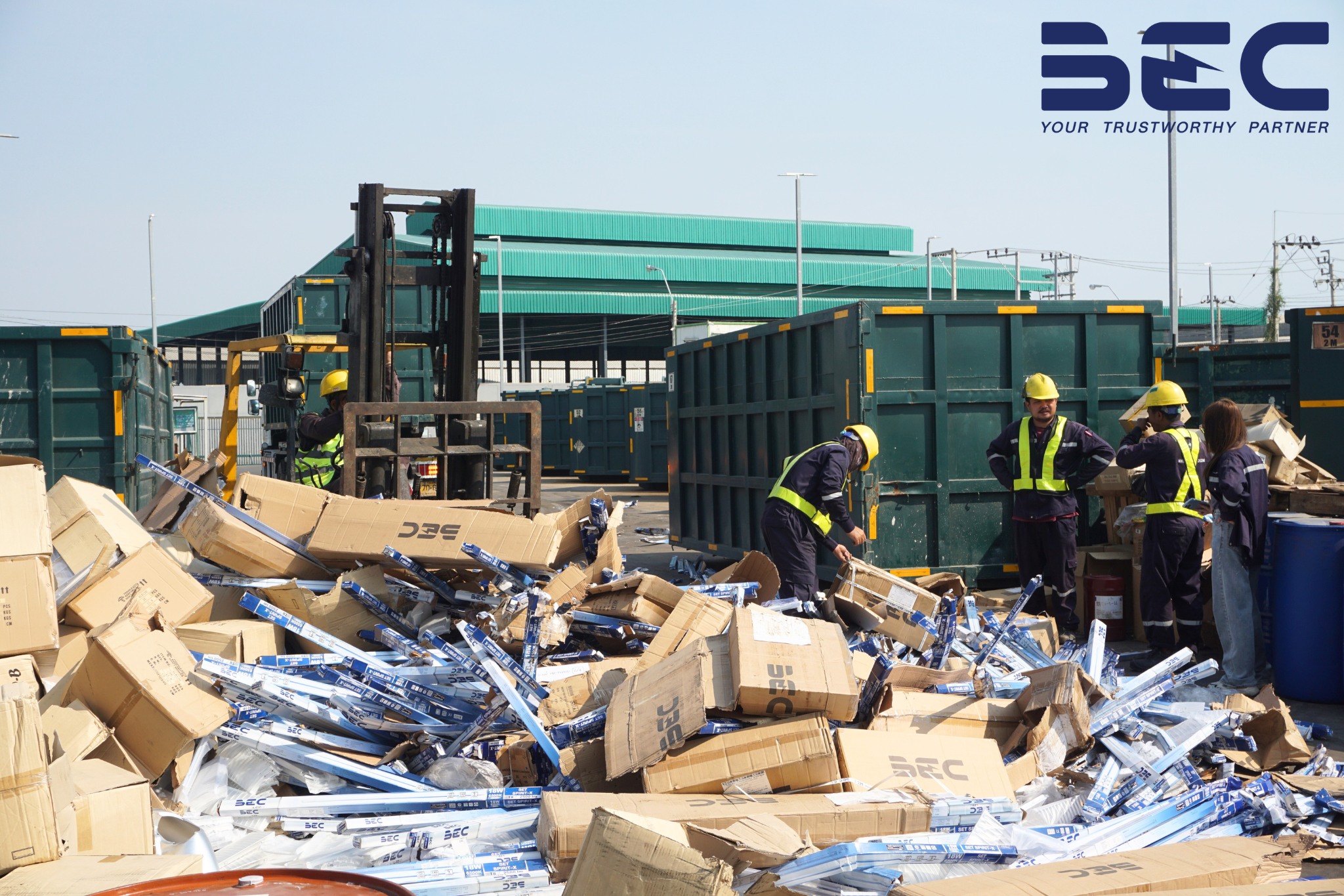 โดยครั้งนี้ BEC ได้มีการว่าจ้างให้ บริษัท เอ็น-เทคโนโลยี คอนซัลแตนท์ จำกัด (ได้รับการรับรองมาตรฐาน ISO 9001:2015 และ ISO 14001:2015) ผู้ให้บริการกำจัดขยะอุตสาหกรรม ดำเนินการทำลายสินค้าที่หมดอายุและเสียหายจากทั่วประเทศ เป็นการดำเนินการกำจัดอย่างถูกวิธีและไม่ก่อให้เกิดผลกระทบต่อสิ่งแวดล้อม