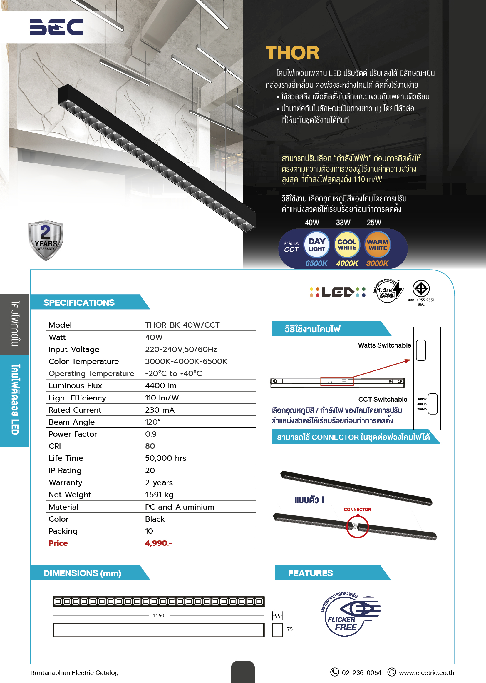 โคมไฟแขวนเพดาน LED ปรับวัตต์ ปรับแสงได้ รุ่น THOR