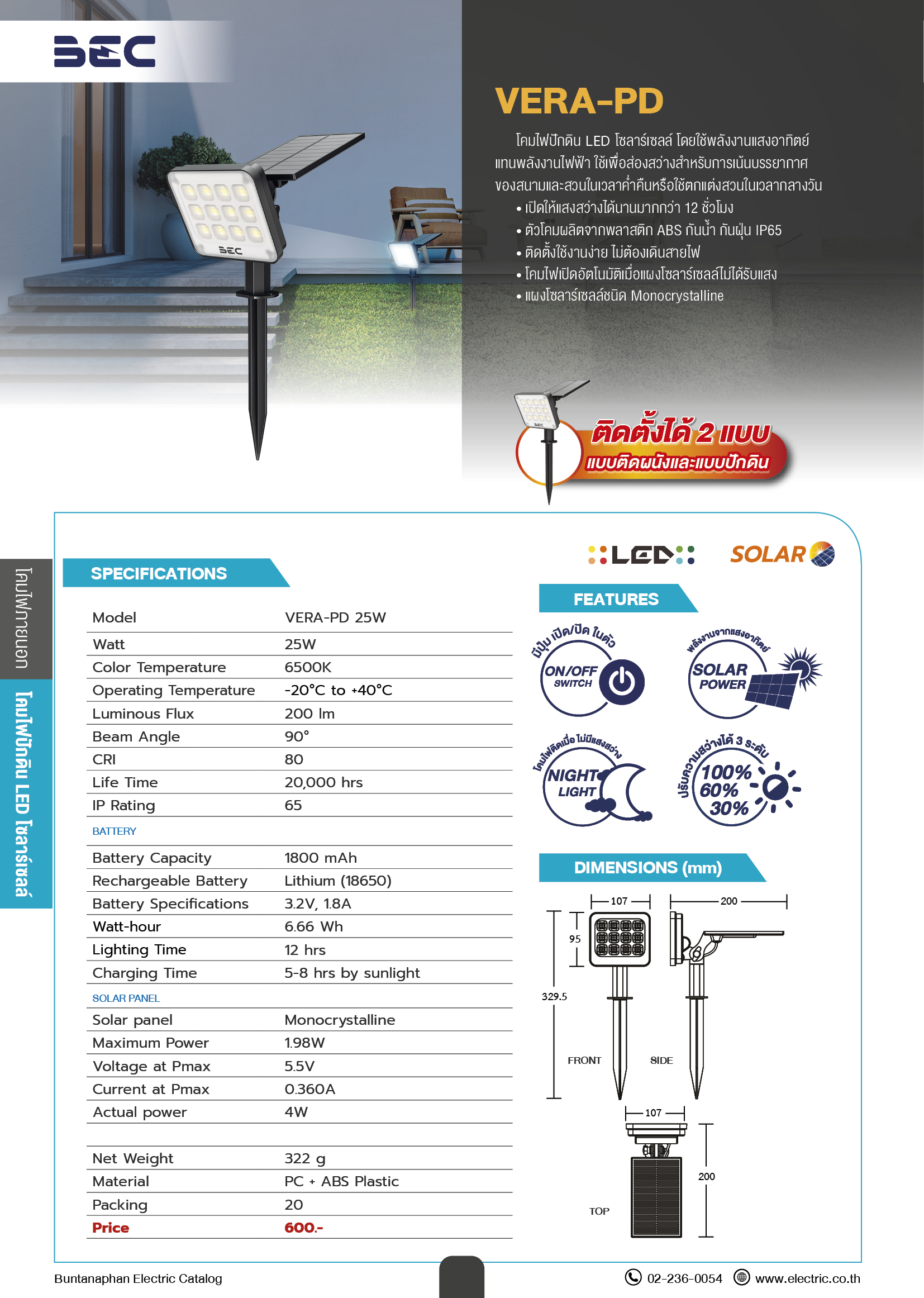 โคมไฟปักดิน LED โซลาร์เซลล์ รุ่น VERA-PD