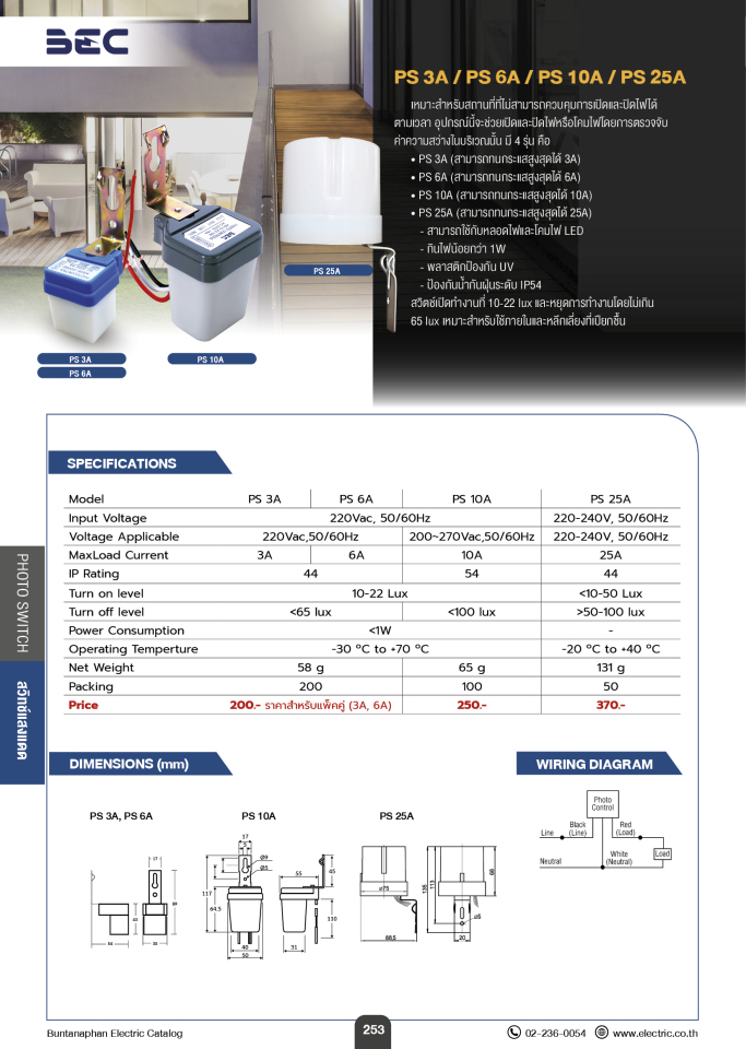 สวิตช์แสงแดด Photo Switch รุ่น PS 3A, PS 6A, PS 10A, PS 25A, PSB 10A
