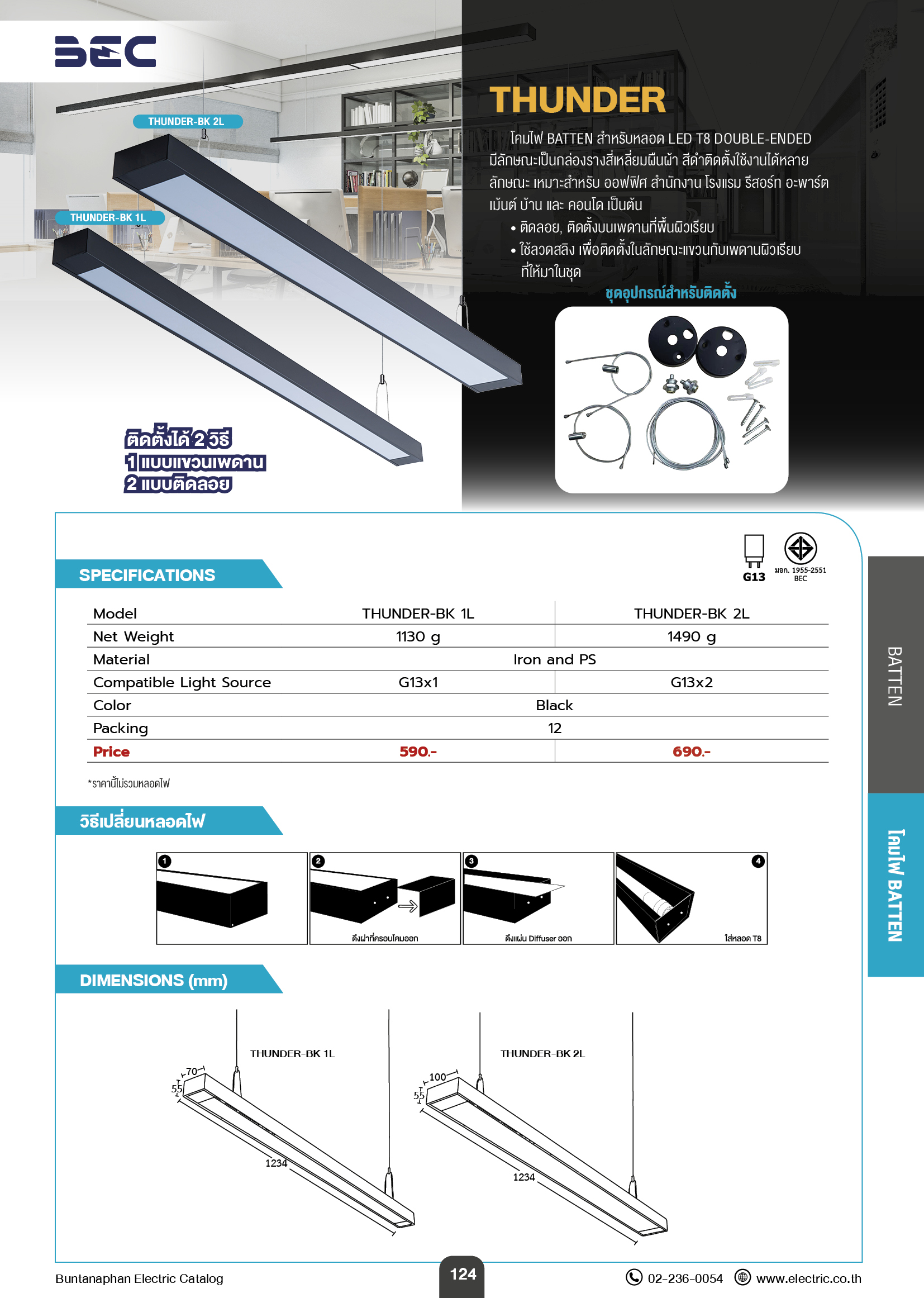 โคมไฟ BATTEN สำหรับหลอด LED T8 DOUBLE-ENDED รุ่น Thunder