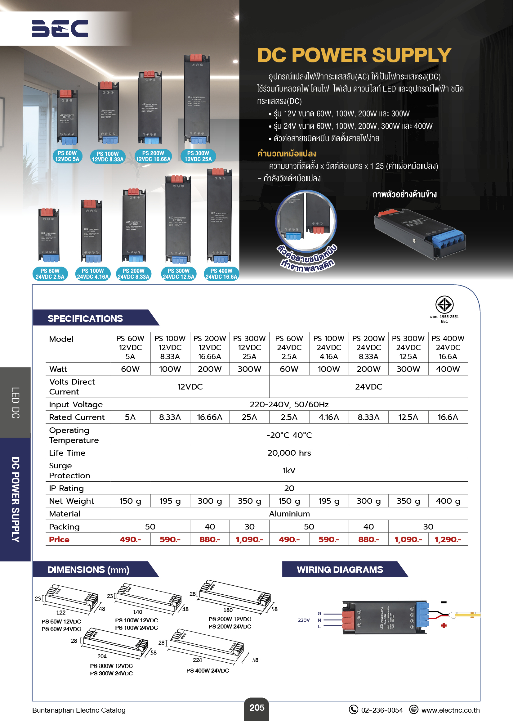 ㆍรุ่น 24V ขนาด 60W, 100W, 200W, 300W และ 400W